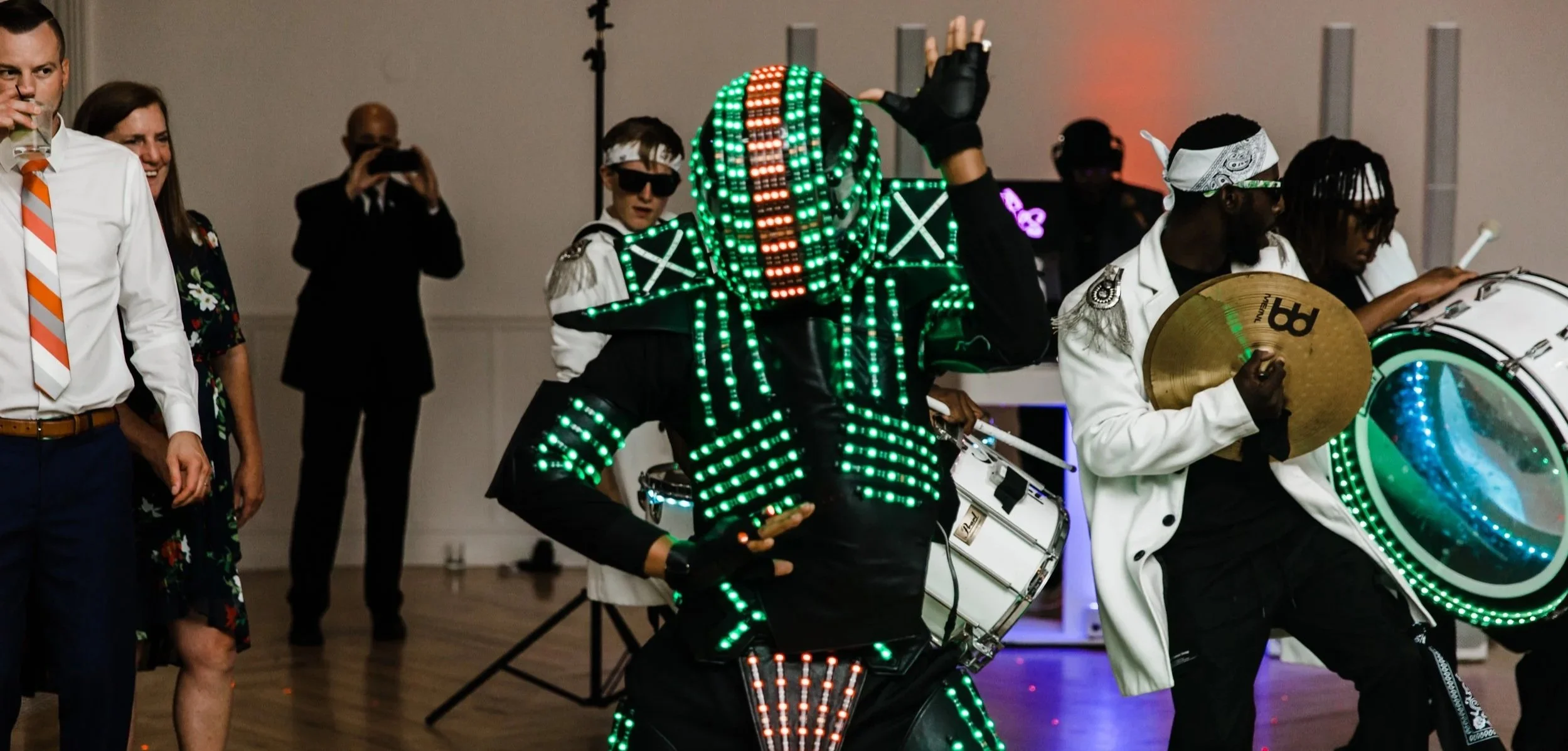 Light up the dance floor with LED performers. We have had events with LED robots, LED instruments, and even LED Samba dancers. It surprises guests and brings a whole new energy to the dance floor!